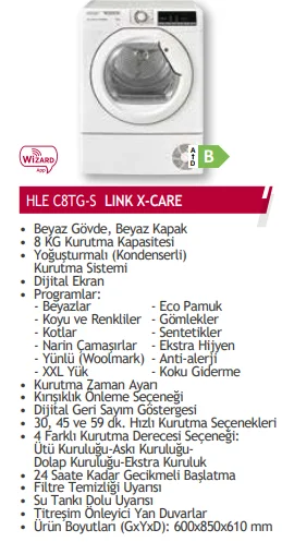 Hoover Hle C8TG-S 8 kg Çamaşır Kurutma Makinesi